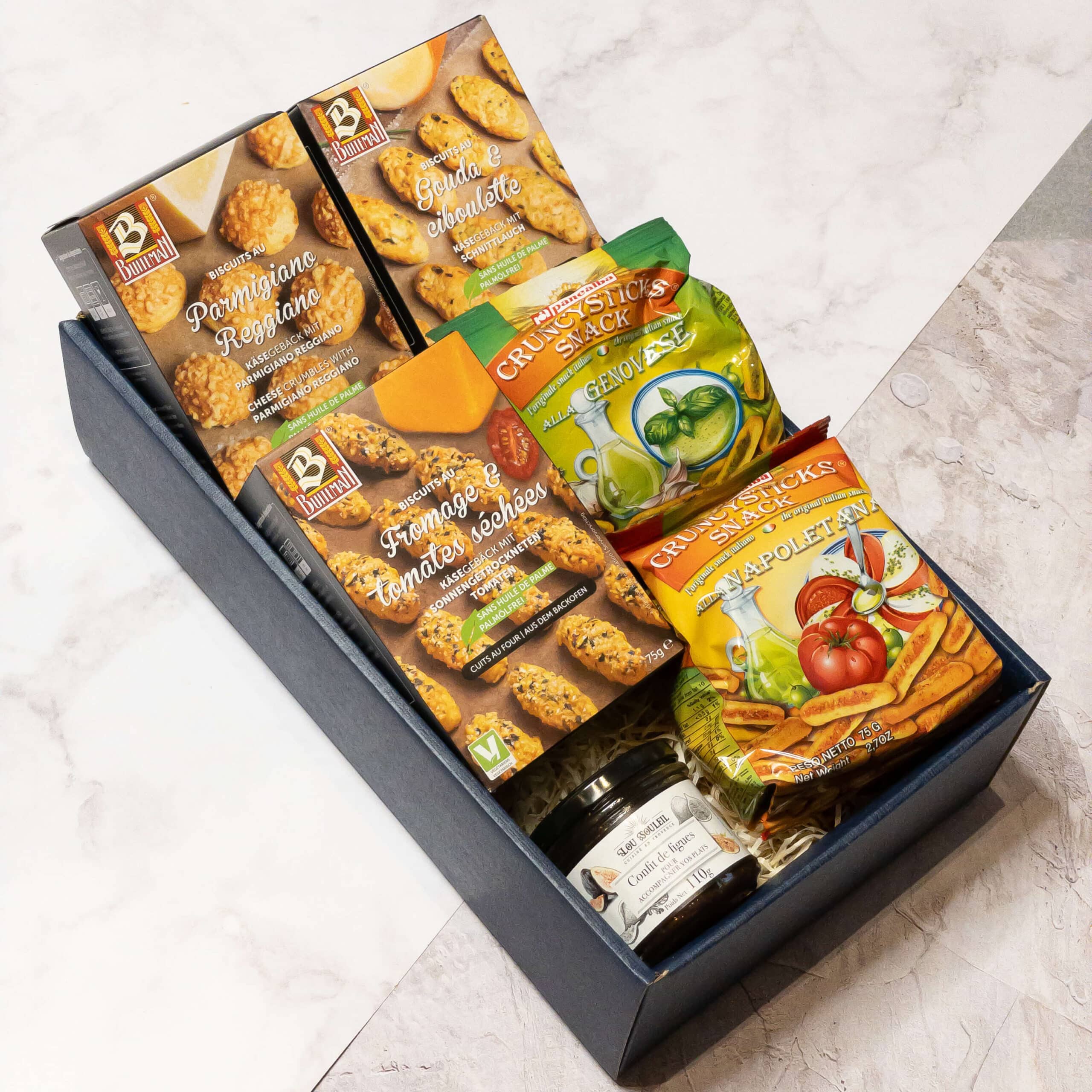 Elegancki zestaw delikatesów z winem Primitivo to doskonały wybór dla miłośników wyjątkowych smaków, łączący śródziemnomorskie specjały i wykwintne przysmaki. To idealny prezent na każdą okazję.