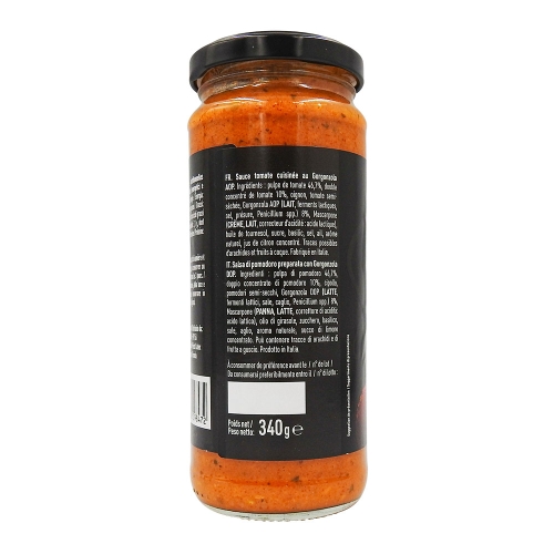 Produkt ten opiera się na tradycyjnych składnikach: świeżych pomidorach i autentycznej gorgonzoli AOP, co gwarantuje jego wysoką jakość. Sos jest gęsty i aksamitny, a jego intensywny smak nadaje każdej potrawie wyrazistego charakteru. Dostępny jest w słoiku o pojemności 340 g, co zapewnia wygodę użytkowania i przechowywania.