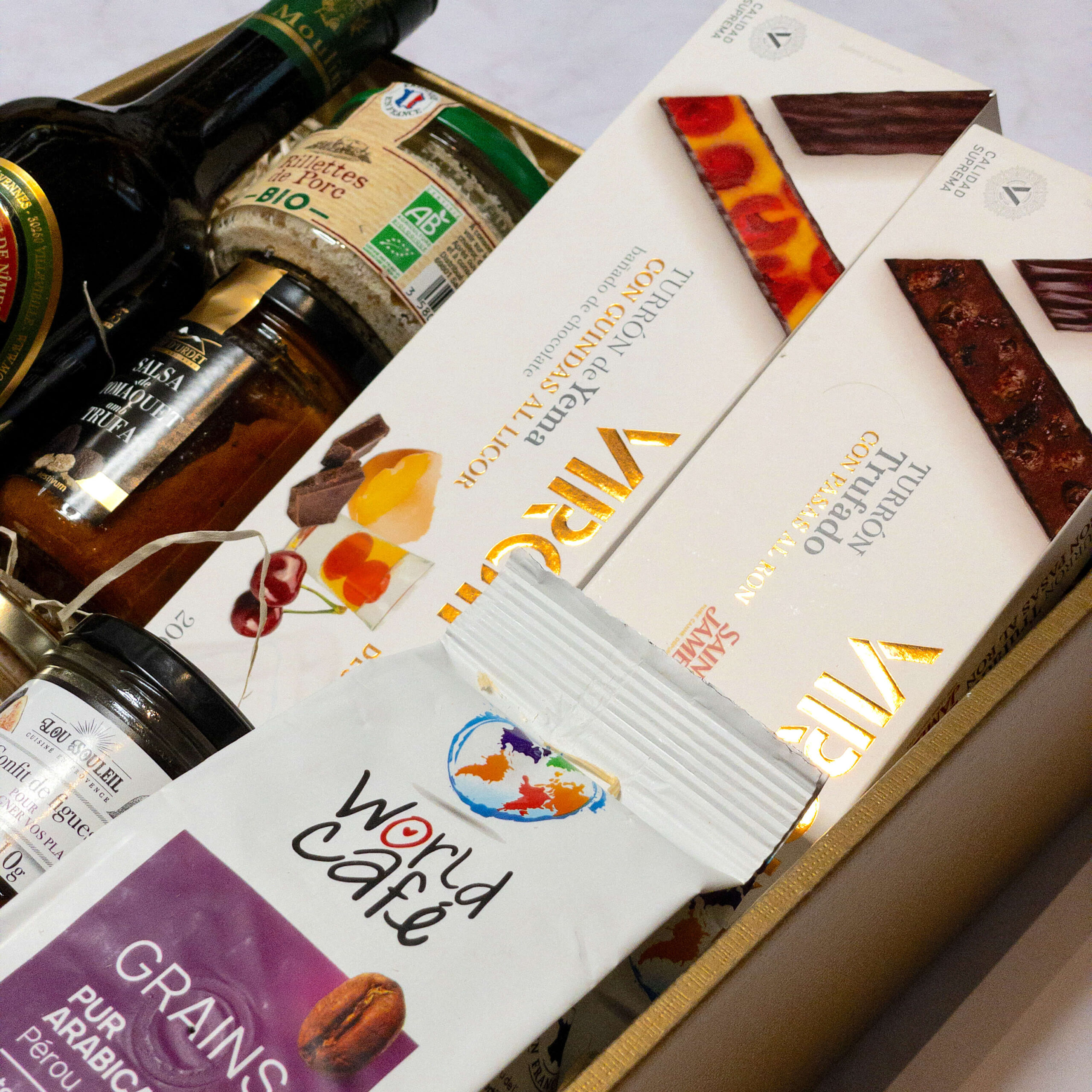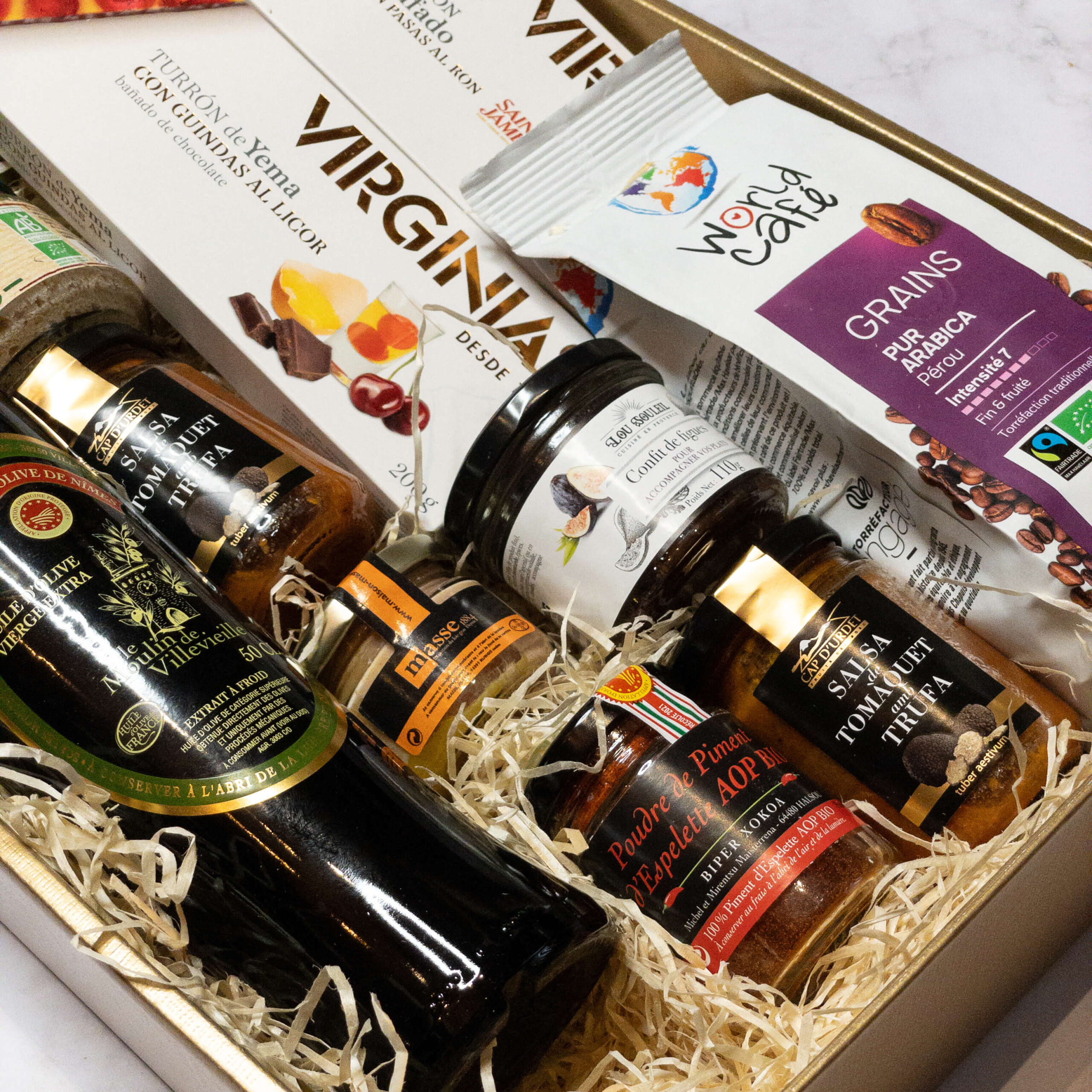 - Produkty takie jak foie gras, truflowy turron czy francuska oliwa z oliwek dodają zestawowi wyjątkowości i ekskluzywnego charakteru. To niecodzienne smaki, które sprawiają, że zestaw staje się wyjątkowym prezentem.